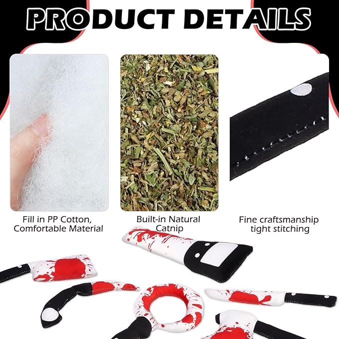 - Cute Cat Knife Toys: These plush toys are perfect for cat self-entertainment and calming, soft and safe for cats to cuddle and tear; perfect for a gift for your cat!