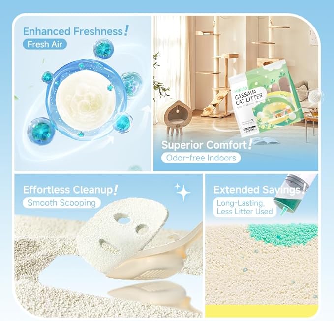 Miniso Cassava Clumping Cat Litter 11lb (4 Pack of 2.75lb Bags)