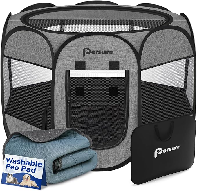Dog Cat Playpen Indoor Outdoor for Puppy Pet Dogs Cat Recovery After Surgery, Dog Tent Crates Cage Indoor/Outdoor, Portable Pop Up Kennel with Carrying Case for Travel (Premium Grey with Pad, Medium)