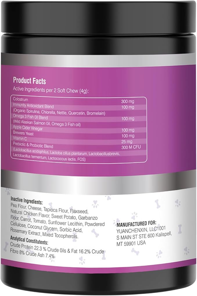 - Support Skin Health & Seasonal Allergy Relief for Dogs: Combat seasonal allergies and boost dog's skin health with dog itch relief chews. Colostrum for dogs calm histamine responses, and natural wild alaskan salmon oi packed with Omega-3s fatty acids (with EPA and DHA) for a vibrant skin and coat and dog itch relief. Pet allergy chews keep your furry friend healthy, and ready for every adventure. Perfect for anti itch for dogs, anti itch dog chews promote vitality while soothing skin irritations