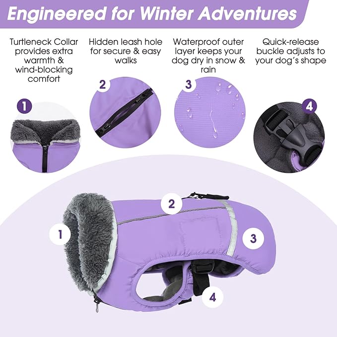 - SUPERIOR MATERIAL: Great quality nylon and fleece lining and PP cotton filling, this dog winter coat is thickened, soft, cozy, windproof and waterproof, keep your pup warm and dry in cold weather; Lightweight dog winter jacket, suitable for all indoor and outdoor activities
