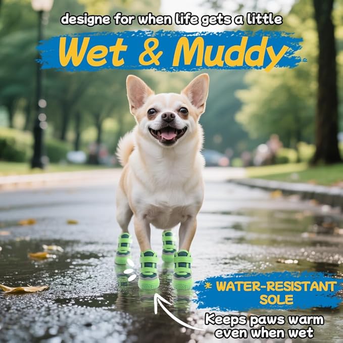 Dog Shoes for Small Dogs, Breathable Dog Boots Paw Protector for Hot Pavement Winter Snow, Dog Booties with Reflective Strips Rugged Anti-Slip Sole for Hardwood Floors Outdoor Walking Green Size 3
