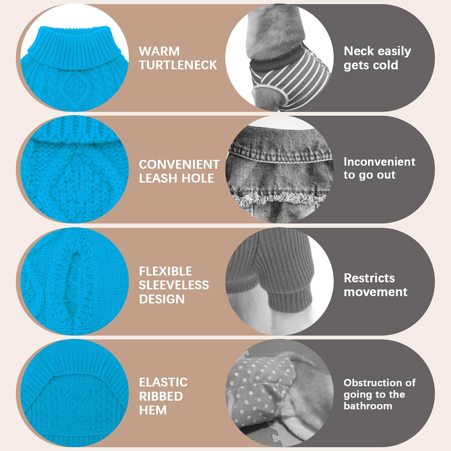 - 【Fashionably Warm】Our sleeveless dog sweater features a classic turtleneck design, keeping your furry friend stylish and cozy. The soft touch ensures ultimate comfort for your pet