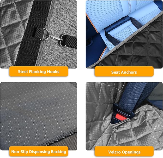 - 100% Waterproof & Scratch-resistant: The inner and outer surface fabrics of the dog car seat are both 600D Oxford fabric, with PP cotton and waterproof TPU in the middle. It uses hot pressing technology instead of quilting, without needle holes to avoid leaking water. Meanwhile, Oxford fabric is extremely scratch-resistant, don't worry about pets scratching your leather seat.