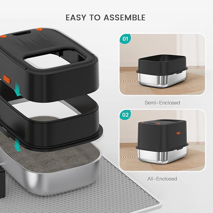- 【Why Choose Stainless Steel Litter Box!】 Open top stainless steel cat litter box made of high-quality ABS enclosed high wall enclosure and stainless steel litter pan, unlike plastic litter boxes, stainless steel litter boxes with high sides do not collect any residue or odor, are easily to clean, have strong and durable, and never rusty