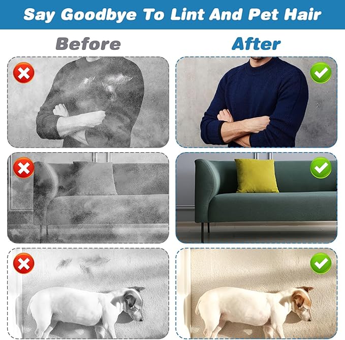 - Efficient Hair Removal: This pet hair removal gloves adopts electrostatic thickening design to effectively remove pet hair, whether it is clothing, furniture, carpets or car seats, say goodbye to traditional ineffective brushes and sticky hair rollers