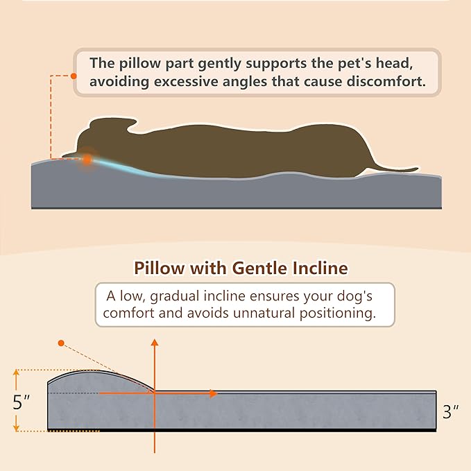 - 【Low Gentle Slope Pillow】: At one end of the bed, it is not a higher pillow, but a carefully designed low gentle slope pillow that gently bears / supports: Naturally conforms to the dog's neck curve, softly lifts the head, reducing the pressure borne by the cervical spine during daily activities and sleep. Especially more friendly to senior dogs. Prevents uncomfortable postures caused by overly large angles.