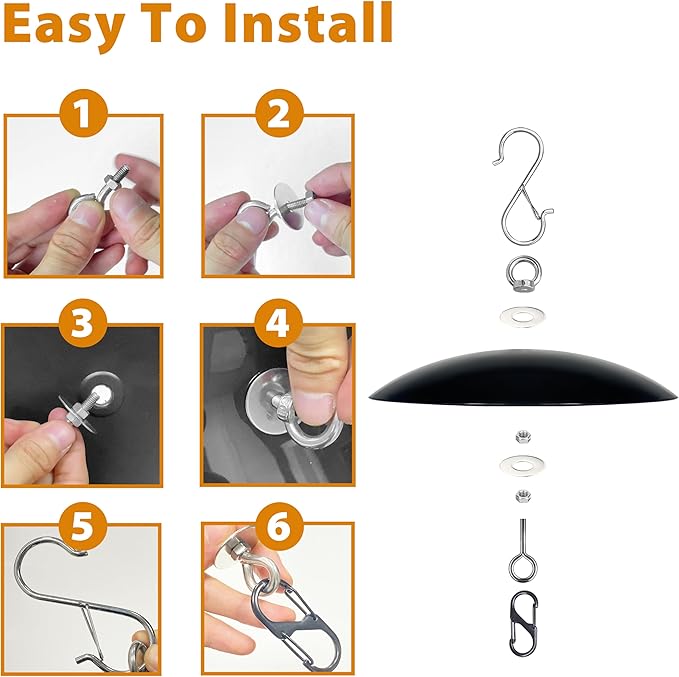 - 【13 Inch Dome Cover】Fits most hummingbird feeders, easy to install, just hang it on a shepherd's hook or tree trunk, the feeder will hang below the dome cover, which protects your precious bird food! The curved design effectively blocks rain and leaves from entering the inside of the bird feeder.