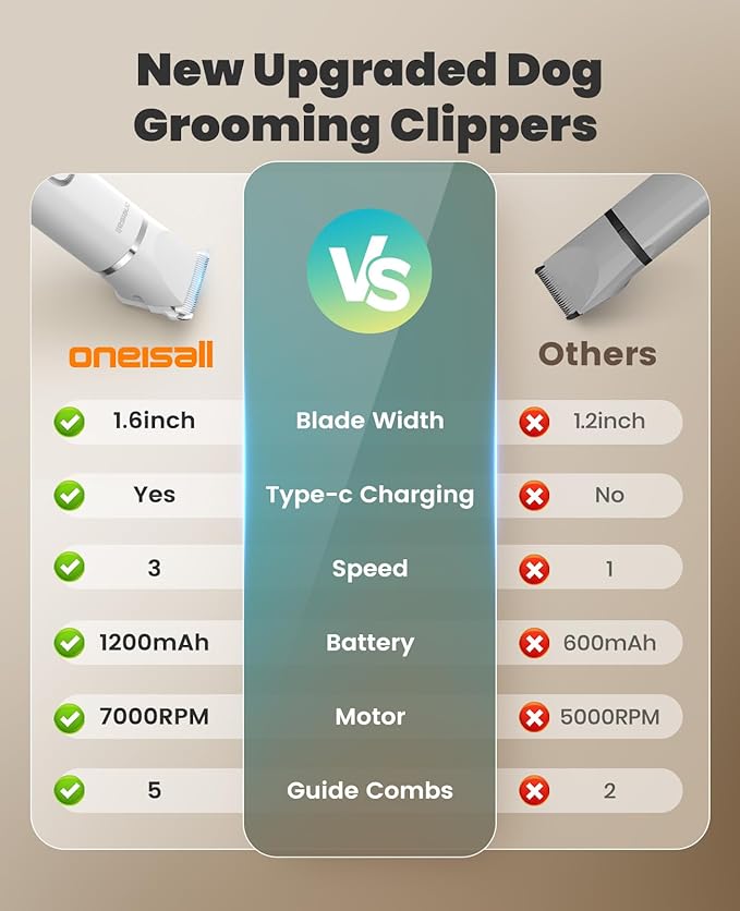 - 2.5Hr Runtime Dog Grooming Kit: Busy parents love this dog trimmer for grooming – 1200mAh battery delivers 2.5 hours cordless use (1.5hr USB-C charge). No mid-session shutdowns during dog paw trims or full-body shaves