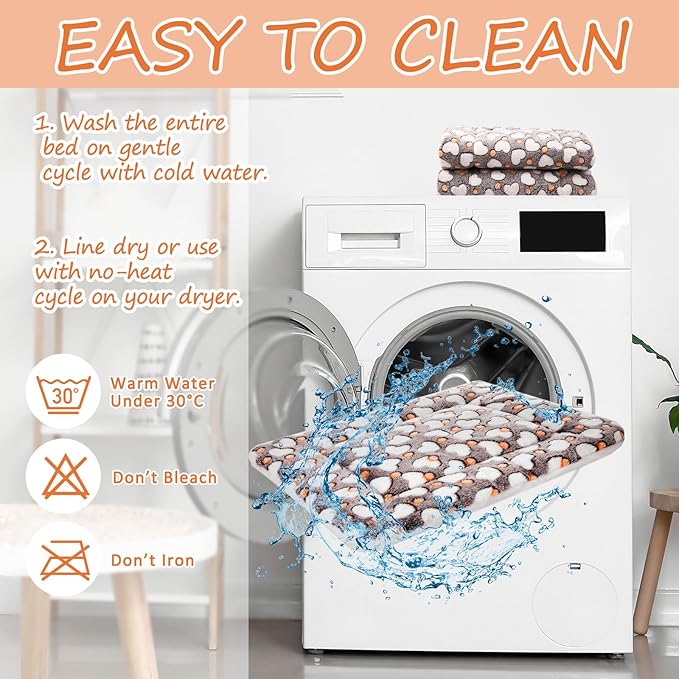 - Easy to Wash: the thermal pet bed mat is machine washable in cold water, and dryer friendly for easy cleaning, don't bleach, do not shrink, remains in shape after times wash; Let your pets enjoy a breathable, clean and hygienic pad