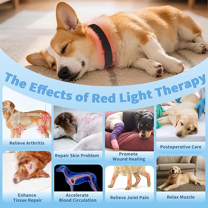 Red Light Therapy Collar for Dog, 660nm & 810nm & 980nm Infrared Red Light Vet Therapy Device for Pet, Cold Laser Therapy Device for Dog Tissue Repair, Pain Relief Arthritis, Promote Blood Circulation