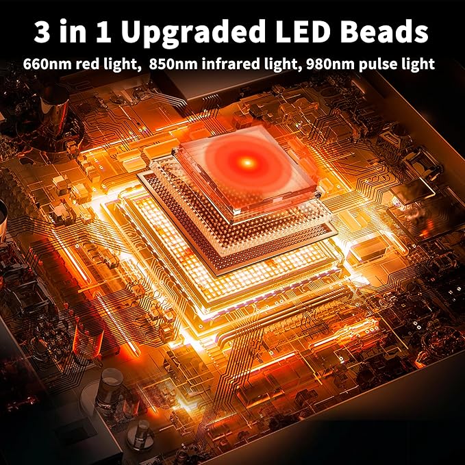 - Red Light Therapy for Dog: Red light therapy can deeper repair the skin tissues. 660nm red light can work on the skin and achieve enhanced blood circulation. The 980 and 810nm infrared lights reach deep into skin and joints to relieve pain, speed wound healing, decrease inflammation. 660nm & 810nm & 980nm are perfect combination wavelength. Please remember that continued use of the dog red light therapy will achieve better effects. (Note: 980nm & 810nm are invisible to eyes when working.)