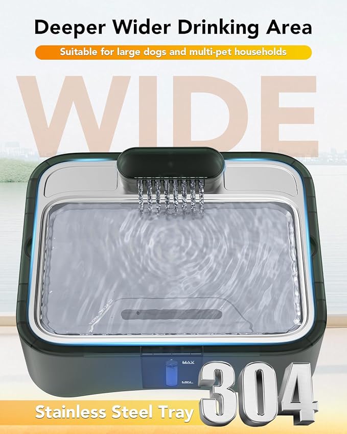 - 304 Stainless Steel Wider Drinking Tray: The part that comes into contact with your dog's mouth is made of 304 stainless steel, ensuring durability and easy cleaning. Its wider opening effectively prevents splashing, keeping your floors dry and tidy