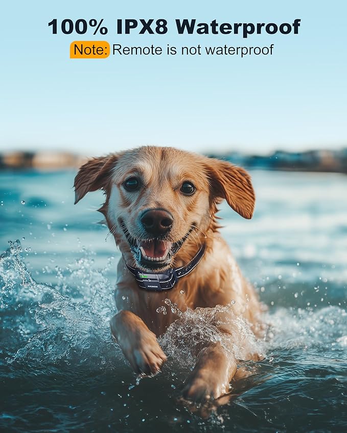 - 【IPX8 Waterproof Collar & Security Lock】The electric dog collar can be used in any weather and any condition thanks to the IPX8 waterproof design of the receiver. Instant response security on/off switch button allows you to carry it without any fear of accidental touch.