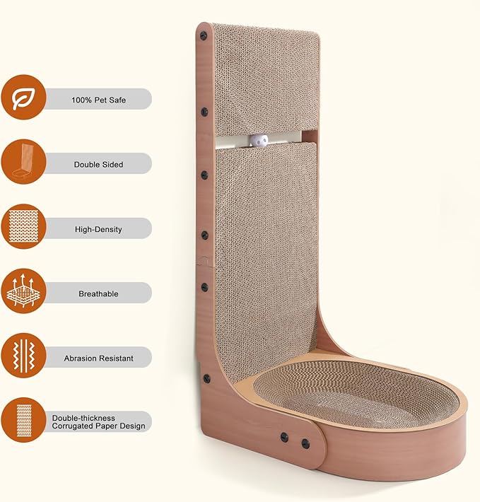- High Quality Materials: Made of non-toxic corrugated paper and no harmful materials. The dense corrugated cardboard surface is double-walled, which is durable enough to withstand cat scratching.