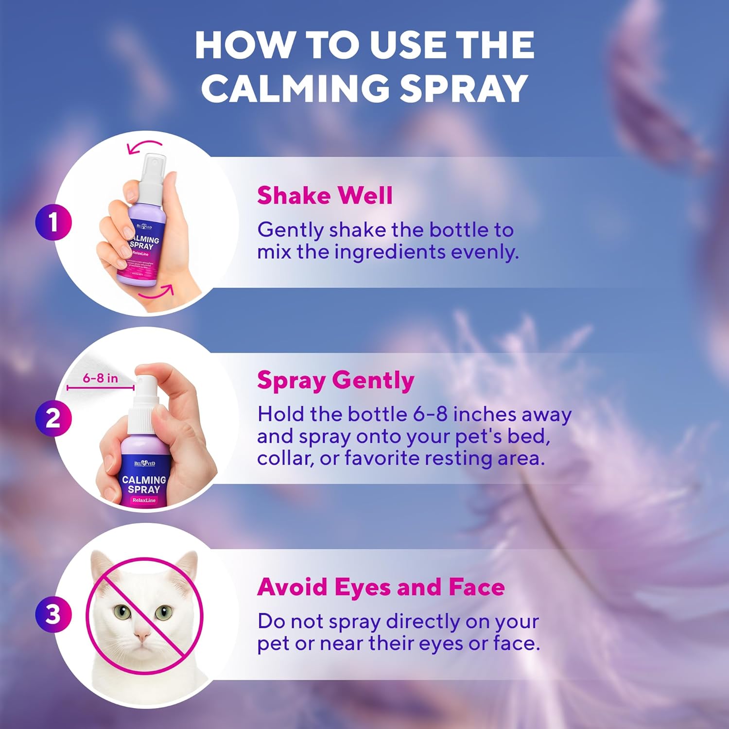 - ✅HOW TO USE: Calm sedative products can be used with a car, cat carrier, indoor or with onto different objects with which your pet is in contact. It is great for use for your home area, such as window frames and doorframes, armchair, sofa etc.