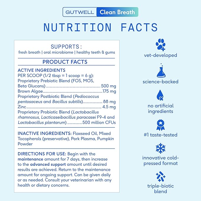 - SUPPORTS ORAL + GUT MICROBIOME: Healthy mouth, happy gut. Our teeth powder for dogs has triple-biotic blend that feed beneficial flora keeping your pup's gut & mouth healthy, reduce dog bad breath, and deliver a powerful dog breath treatment that works from the inside out for a full-circle wellness.