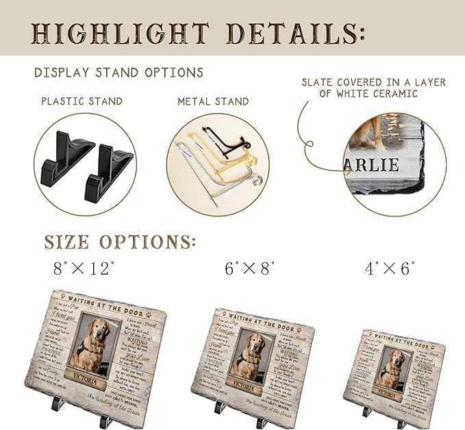 - Size and Base: Four sizes are available to suit your needs. This memorial stone comes with a double-layered base, making it ideal for placement on bookshelves, fireplaces, gardens, backyards, or bedside tables. These customized gifts turn into a meaningful and heartfelt pet loss sympathy gift dog.