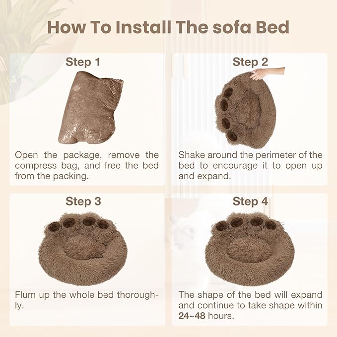 - 【Quick Recovery】- The cute dog bed may be flatten during shipping, it will regains shape naturally in 24-48 hours. In addition, you can speed up this progress by manually adjusting and shaking the paw pet bed.