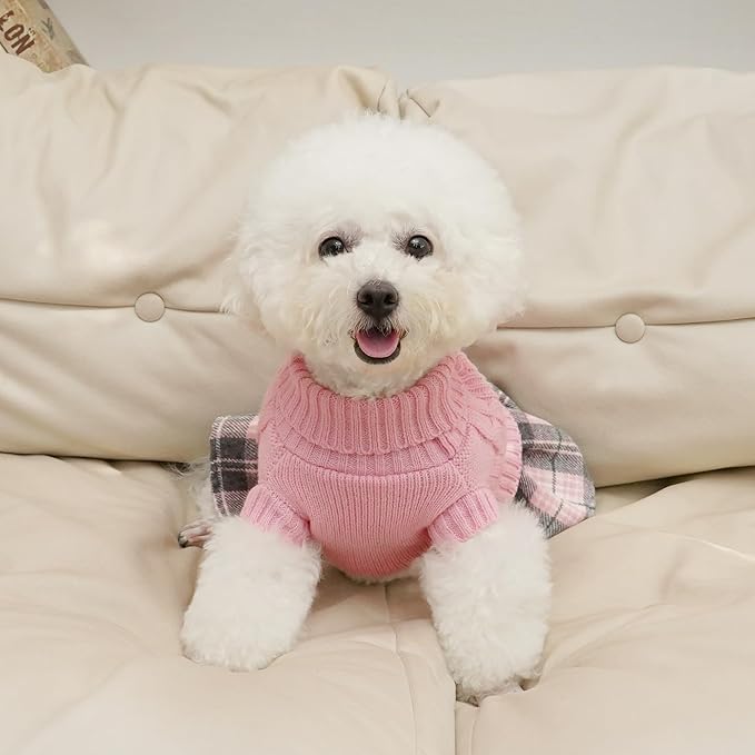 - Pleated Skirt Design: WOYYHO dog sweater with a plaid pleated skirt is basic but fashionable. Be ready for any occasion, daily activities, or taking photos at any time. A diamond-encrusted bow makes your furry friend look cuter