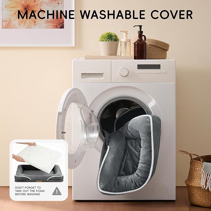 - Washable and Leak Proof: The external material is easy to clean and can be easily wiped to remove dirt and dust. Even if your dog leaks urine or drools, you don't have to worry. Just remove the cover and clean it separately. The waterproof layer below protects the internal foam from moisture and stains to ensure that the sponge remains dry and sanitary.Please note that the foam insert is not washable. Allow the bed to expand for 24-72 hours after unpacking.