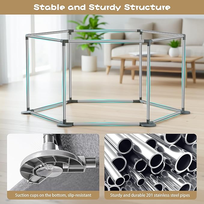 - 【43-Inch Multi-Pet Space】 With a roomy 43” x 43” x 25.2” hexagonal design, our pet playpen gives multiple puppies or small-to-medium dogs plenty of space to play, relax, and move around — no more cramped feelings like traditional dog pens indoors. Great for keeping pets comfy together, indoors or out.