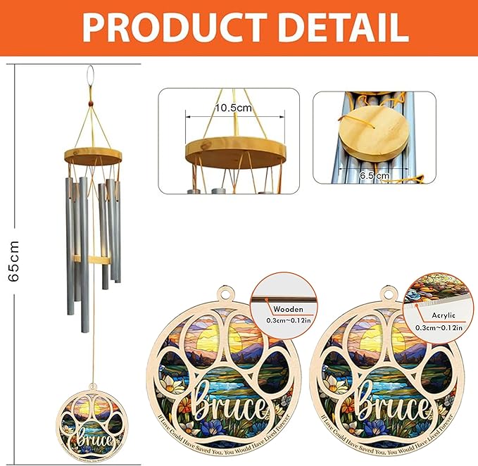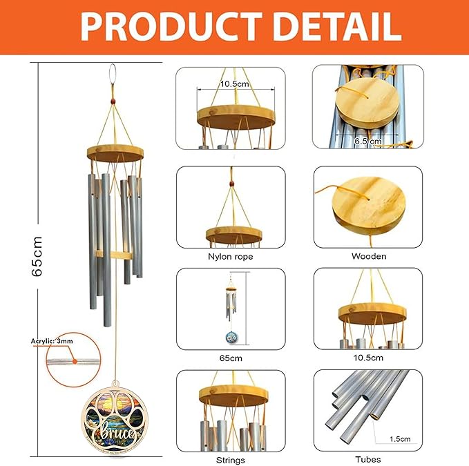 - Deep and melodious tones: When a gentle breeze blows, six thick aluminum tubes create soothing melodies in your yard. personalized pet wind chime became the perfect cat dog remembrance gift, capturing their cherished moments together.