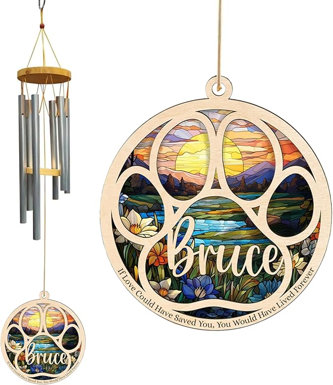 - Personalized pet wind chime: The words on the sympathetic wind chime will bring hope, comfort, and healing to those who have lost their little dog and cat. You can personalize any name and year on the wind chime. He's a good choice for a pet loss sympathy gift.