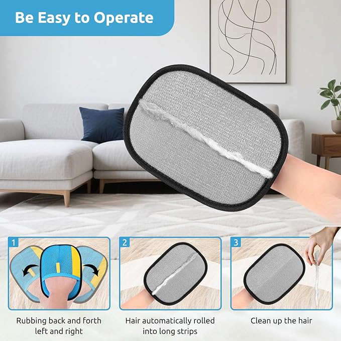 - Dual-Action Cleaning: The pet hair removal gloves combine static electricity with a special brush design to effortlessly remove both pet hair and dirt from fabric surfaces, allowing for comfortable, multi-angle use on furniture, clothing, and car seats