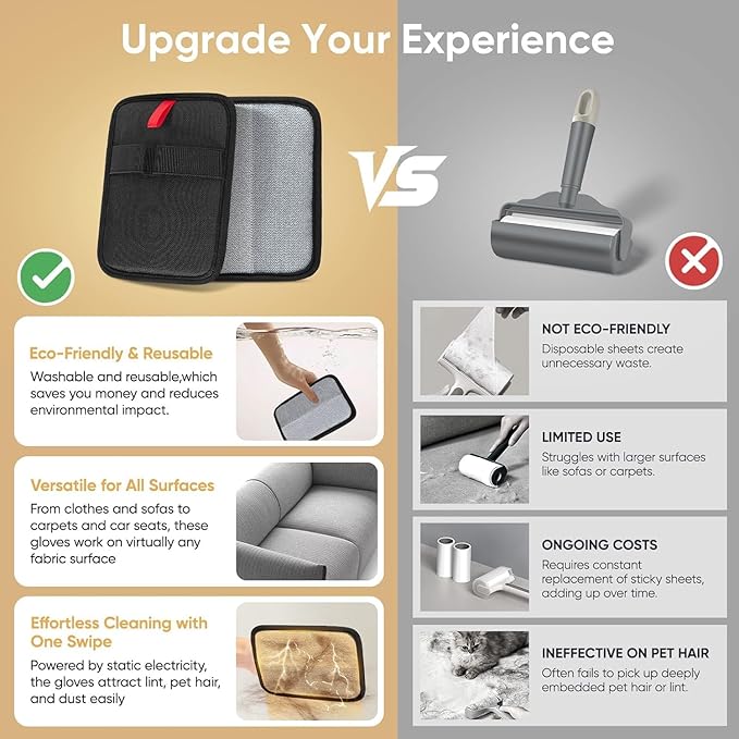 - 【Gentle on Hands & Skin】 Made with soft, skin-friendly materials, the fur removal tools are comfortable to wear even during long cleaning sessions. No more hand fatigue!
