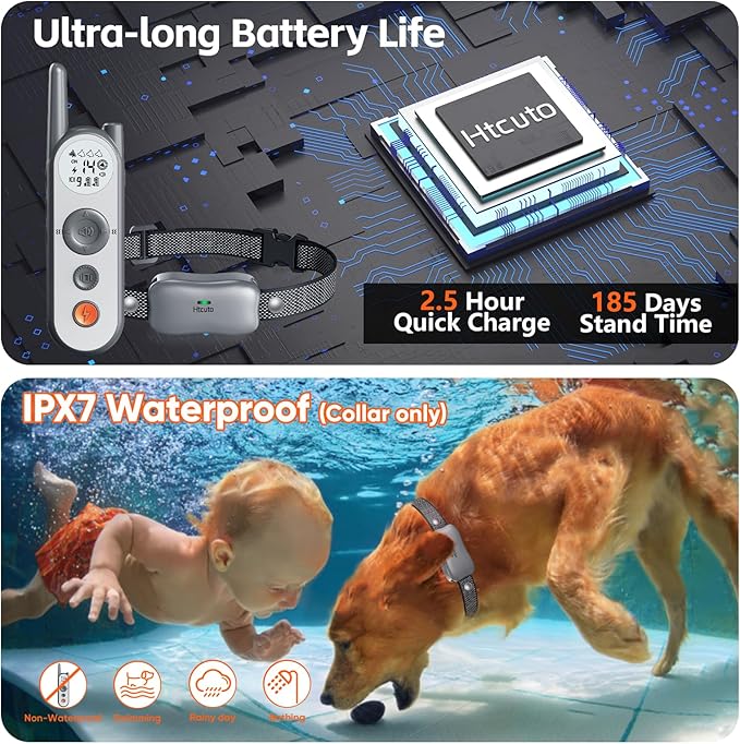 - New 2-in-1 advanced chip: No monthly fees and No wires! Htcuto wireless dog collar fence system integrates the functions of wireless fence and remote training collar, which is simple and convenient to operate. Allows you to train your dog to stay in the yard or train your pet when you are outdoors, shaping good safety habits