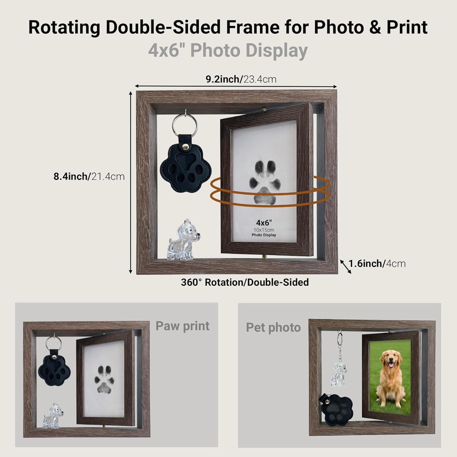 - 【360° ROTATING MEMORIAL FRAME】: Cherish their memory from every angle. Our wooden remembrance frame features a unique 360° rotating display, perfect for a 4x6" photo on one side and their precious paw print on the other. Place it on any desk or shelf as a beautiful, constant reminder of the loving bond you shared. It’s a tangible tribute for anyone searching for a meaningful