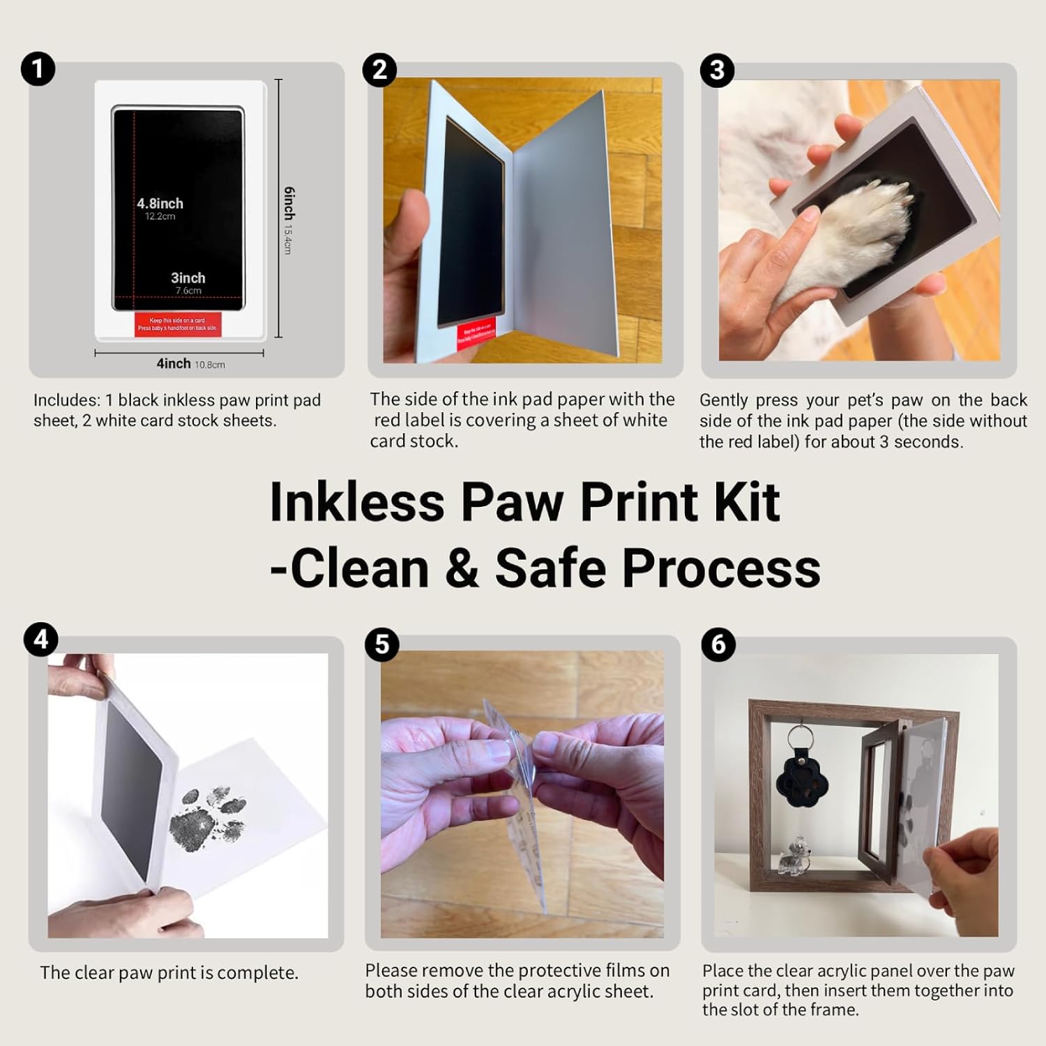 - 【100% MESS-FREE PAW PRINT KIT】: Create a perfect, lasting imprint with zero mess—we guarantee it. This dog paw print kit uses "Clean Touch" inkless technology, ensuring your pet's paw never touches the ink. It's completely non-toxic and pet-safe, allowing you to capture a beautiful, detailed keepsake worry-free. The set includes 2 impression cards for practice or multiple pets.