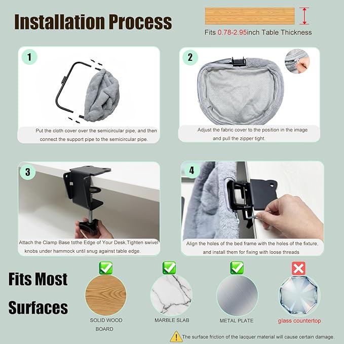 - Versatile Usage**: Perfect for desktops, our cat bed desk mount can fit seamlessly into any home office setup. It's not just a cat bed; it's a multifunctional solution that caters to both your pet's needs and your workspace aesthetics, making it a must-have for any cat lover