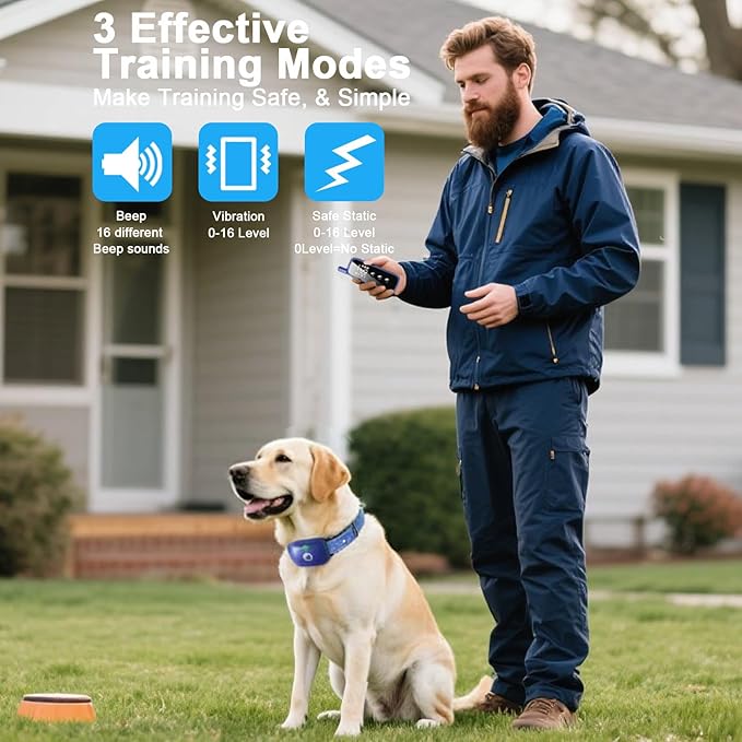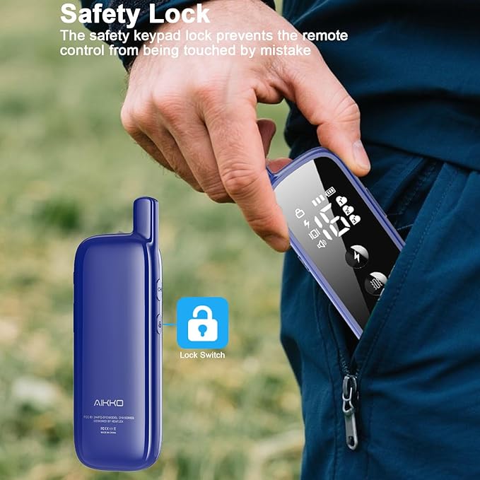- Three training modes : The aikko dog training collar offers three training modes for stubborn dogs: beeping, electric shock (levels 1-16), and vibration (levels 1-16). The on/off key and safety lock of the remote control can prevent accidents in time and provide safety for your dog.