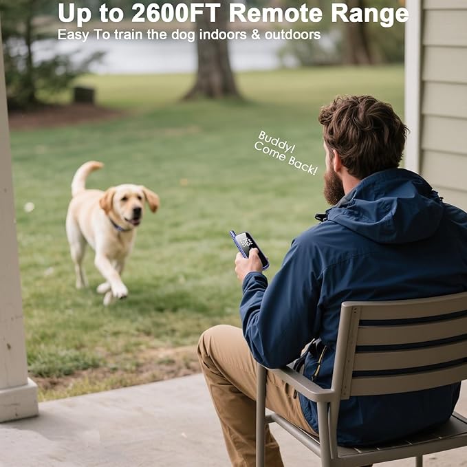 - Unleash unlimited training possibilities: One remote control can control three dog e-shock collars to provide multi-functional training within a range of 2,600 feet, offering flexibility and effectiveness for training in open areas such as backyards, parks and beaches.