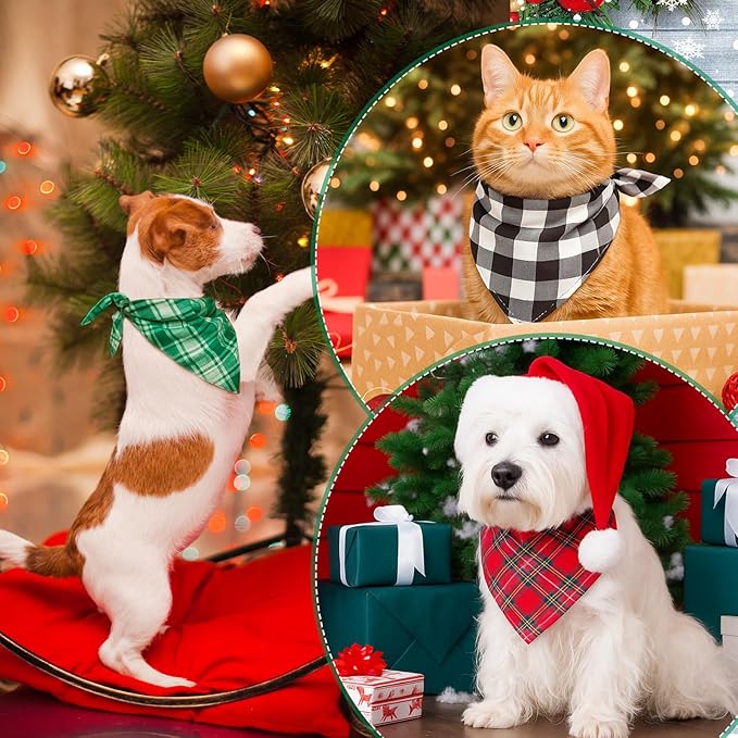 - Sufficient Quantity: there are 50 pieces christmas red green Buffalo plaid bandanas for dogs in 10 different designs, 5 pieces each style, enough quantity can meet your pet's christmas day decoration needs and replacement or share with your family and friends who have lovely pets