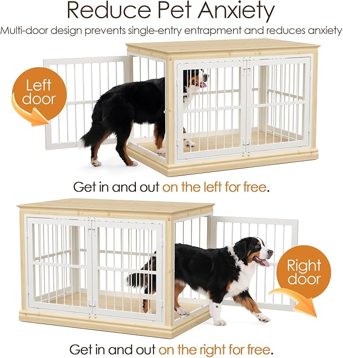 48 in Solid Wood Dog Furniture Crate for Dogs-Large Dog Crate Sideboard and TV Stand, Large, Wood Dog Crate Kennel-(White+Natural)