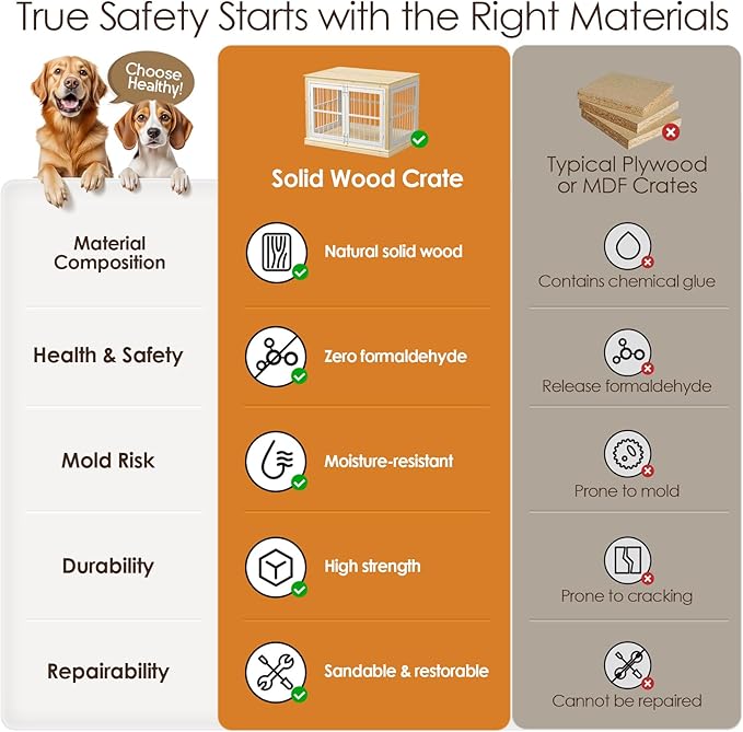 - Sturdy Solid Wood & Airy Layout: Crafted from high-quality solid wood for dog crate , it’s built to last. Your pet stays cool. No more worrying about stuffy, enclosed spaces—this dog crate is all about comfort and visibility