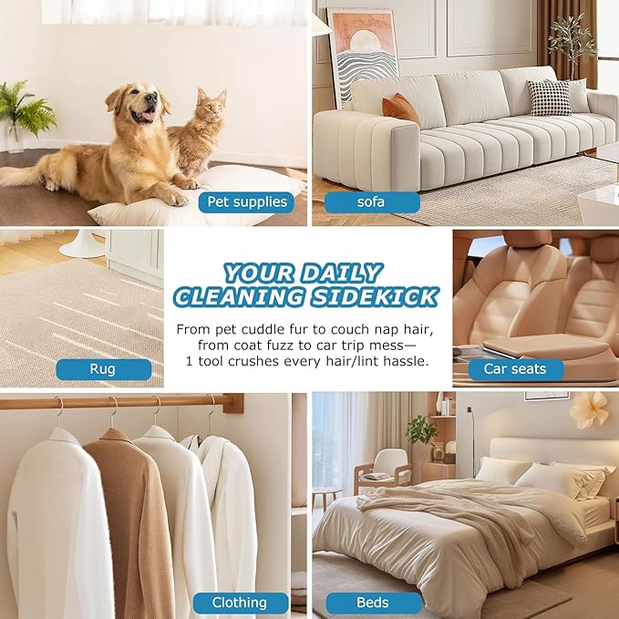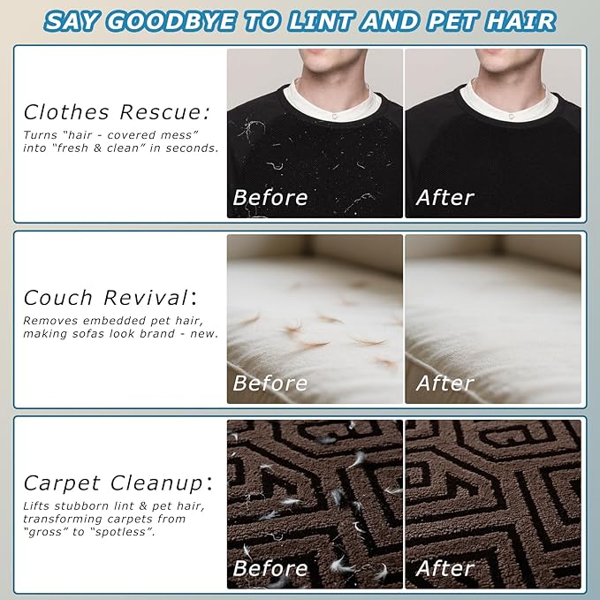 - Dual-Action Cleaning & Grooming: More than just a household fur remover, it's also a gentle deshedding glove for your pets. Use during brushing sessions to capture loose hair directly from your dog or cat's coat, helping reduce future shedding around the house while promoting a healthier bond with your pet.
