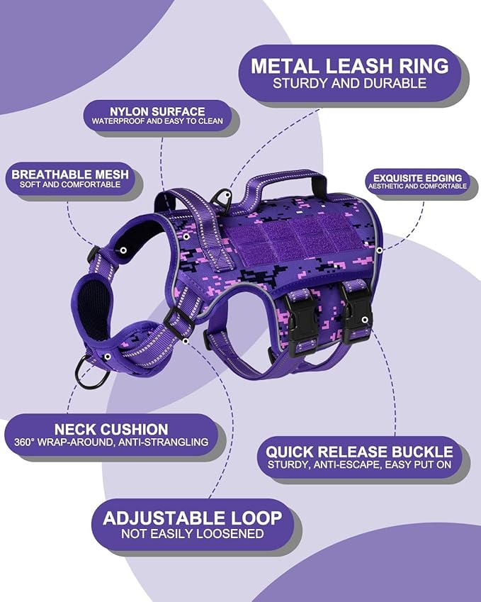 - Easy Control: The front metal leash ring is designed for no-pull control, making it perfect for training or dogs that frequently pull, while the rear ring is ideal for leisurely walks, jogging, or hiking. The dog harness features horizontal and vertical nylon handles for easy grip on your dog.