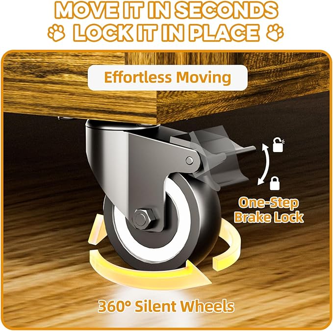- Easy-Move Lockable Caster Wheels: Equipped with 4 smooth-rolling wheels (2 locking casters), making it simple to relocate the crate from room to room. Clean under and around it easily or shift your pet into sunlight