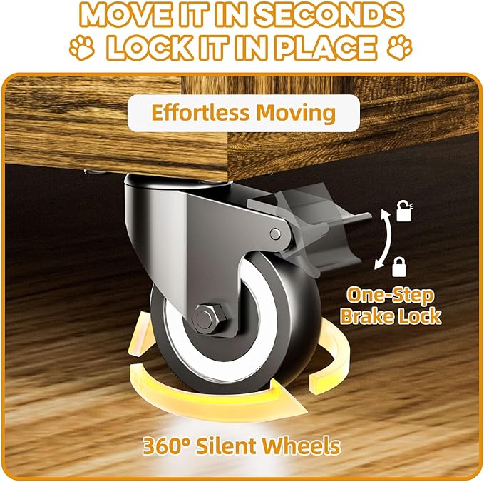 • Easy-Move Lockable Caster Wheels: Equipped with 4 smooth-rolling wheels (2 locking casters), making it simple to relocate the crate from room to room. Clean under and around it easily or shift your pet into sunlight