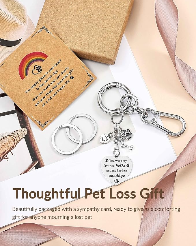- [ A Heartfelt Tribute to Your Beloved Friend ]: Engraved with the poignant quote, βYou were my favorite hello and my hardest goodbye,β this keychain beautifully honors the unbreakable bond with your pet. It serves as a gentle, daily reminder of the joy and love they brought into your life.