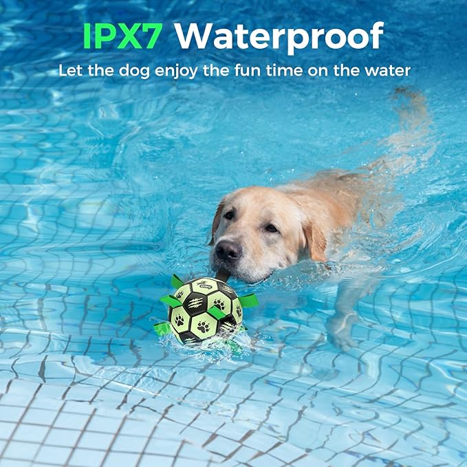 - [ New Glow in the Dark Dog Toys] As night is approaching, this distinctive premium dog soccer ball will glow with green neon light under continuous irradiation time. The light dog ball can attract a dog's attention and share its joy with you. Continuous lighting ensures that your dog can always find this toy ball and no longer have to worry about not finding the ball at night
