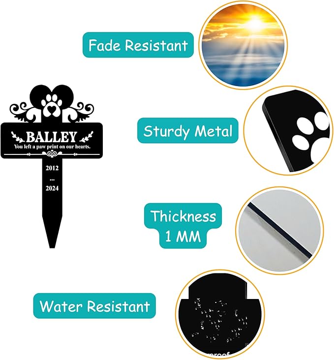 - DURABLE PET MEMORIALS: Crafted from strong steel, these pet grave markers resist rust, weather, and fading. A lasting memorial for your cherished pet.